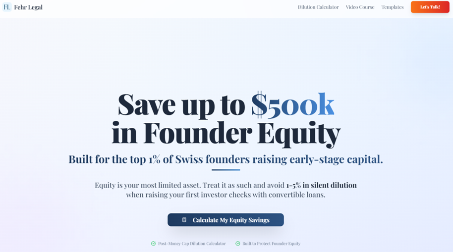 Zu viele Gründer verlieren nicht, weil sie schlechte Entscheidungen getroffen haben, sondern weil sie nicht einmal wussten, welche Entscheidungen wichtig waren. Deshalb hat Marco Fehr das Tool entwickelt. Hier ist es zu finden: www.convertibleloans.ch. Marco nimmt gerne Feedbacks entgegen. Wertvolles Finanztool für Gründer.
